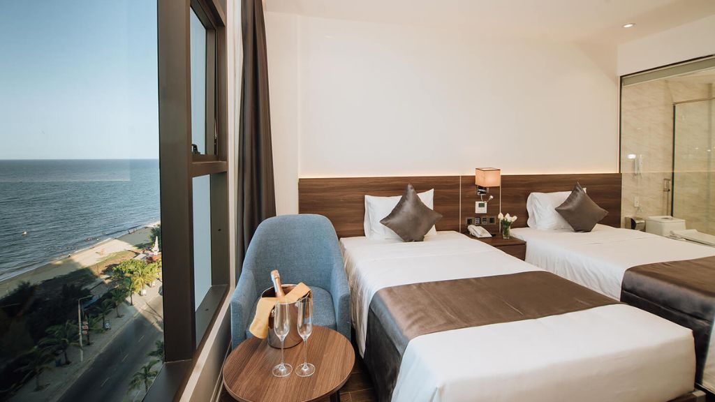 Phòng Triple có diện tích 28m2 gồm 3 giường đơn Twin 1.2m tiêu chuẩn 3 người lớn, được trang bị đệm thoải mái, trong phòng có đầy đủ tiện ích giúp phục vụ nhu cầu của du khách. Hướng nhìn ra cửa sổ, cung cấp ánh sáng tự nhiên và có view rộng rãi cho phòng nghỉ. Với hạng phòng này, du khách có thể cảm nhận được vẻ đẹp kết hợp giữa biển và núi - một khung cảnh thật nên thơ.