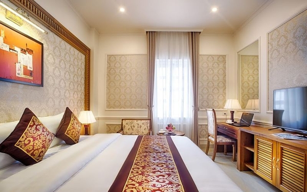 Các trang thiết bị trong phòng ngủ bao gồm dịch vụ làm buồng hằng ngày, hệ thống điện thoại IDD truyền hình cáp quốc tế, máy lạnh, internet phủ sóng toàn bộ khách sạn, bàn trang điểm, thiết bị cảnh báo khói và cháy, tranh mỹ thuật trang trí, phòng không hút thuốc tại tất cả các tầng.
