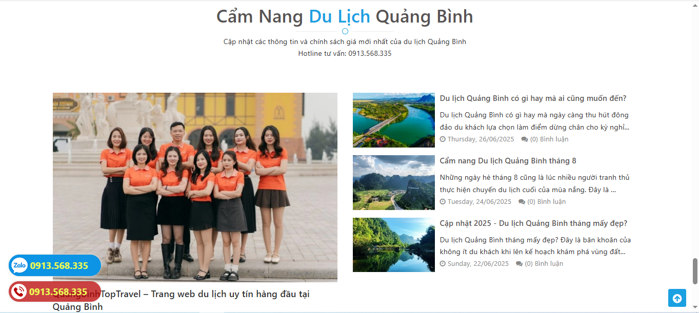Thừa hưởng nền tảng vững mạnh đó, QuangBinhTopTravel không chỉ là một website thông tin mà còn là người bạn đồng hành đáng tin cậy cho mọi du khách đang có ý định ghé thăm Quảng Bình – nơi được mệnh danh là “vương quốc hang động” của châu Á.
