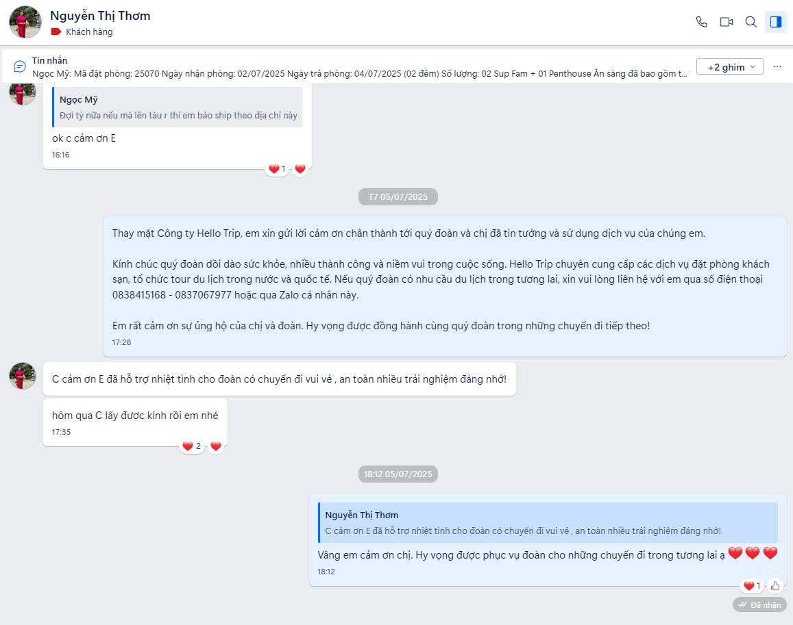 Được thành lập từ tháng 11/2018, đến nay, Hello Trip Việt Nam nói chung, QuangBinhTopTravel nói riêng đã tiếp đón, hoàn thành hàng triệu du khách đặt phòng và tour du lịch thành công, đáng nhớ. Sau những chuyến du lịch đó, chúng tôi nhận về được những phản hồi tích cực và tin tưởng của khách hàng.