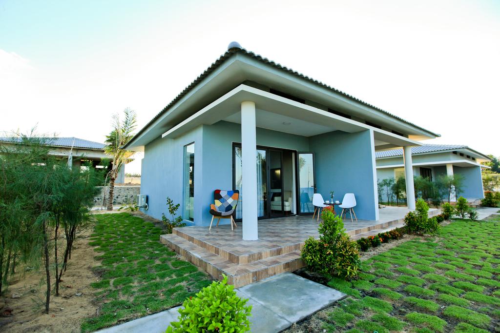 Deluxe Ocean View Bungalows có thiết kế hiện đại, hệ thống cửa kính trong suốt hướng ra biển, giúp không gian có nhiều ánh sáng tự nhiên. Phòng có cửa chính lớn, dẫn trực tiếp ra sân vườn rộng rãi của resort khiến không gian càng trở nên rộng rãi và thoáng đãng hơn.